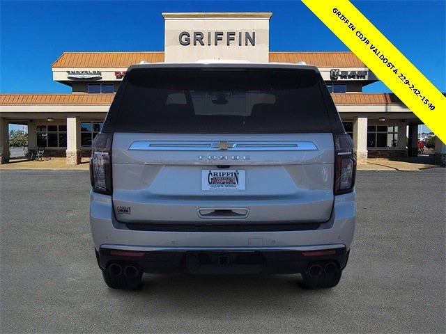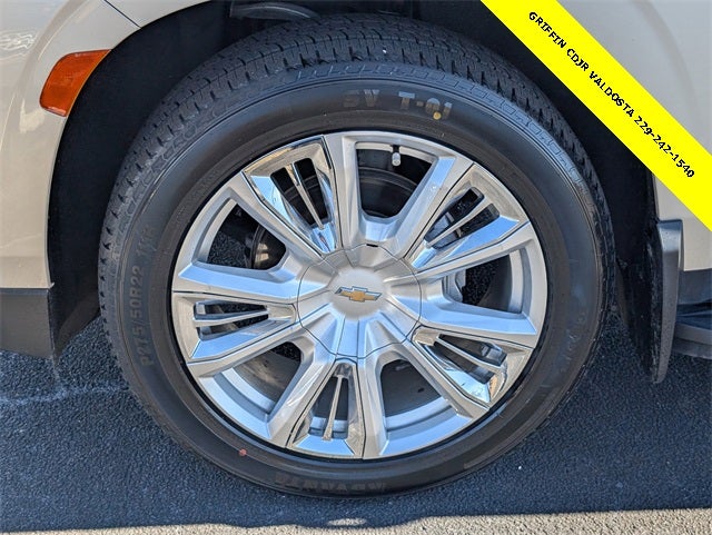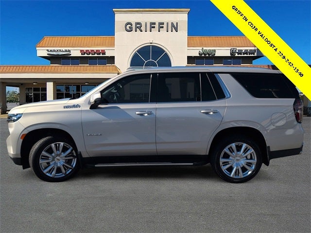 Griffin Chrysler Dodge Jeep Ram Valdosta is delighted to offer this superb-looking 2021 Chevrolet Tahoe High Country In Empire Beige Metallic. This vehicle is beautifully equipped with Preferred Equipment Group 3LZ (15 Diagonal Multi-Color Head-Up Display, 1st & 2nd Row Color-Keyed Carpeted Floor Mats, 2 USB Data Ports, 3rd Row 60/40 Power-Folding Split-Bench Seat, Automatic Heated Steering Wheel, Bright Front & Rear Door Sill Plates, Chrome Door Handles w/Body-Color Strip, Color-Keyed Carpeting Floor Covering, Driver & Front Outboard Passenger Airbags, Dual Exhaust System, Enhanced Driver Information Center, Floor Console w/Storage Area, Front & Rear Park Assist, Hands-Free Rear Power Programmable Liftgate, HD Radio, HD Surround Vision, Heated 2nd Row Outboard Seats, Infotainment Display, Inside Rearview Auto-Dimming Rear Camera Mirror, Lane Change Alert w/Side Blind Zone Alert, Lane Keep Assist w/Lane Departure Warning, Leather-Wrapped Steering Wheel, LED Daytime Running Lamps, Memory Settings, Outside Heated Power-Adjustable Mirrors, Power Release 2nd Row Bucket Seats, Power Tilt & Telescopic Steering Column, Rear Camera Mirror Washer, Rear Cross Traffic Alert, Rear Pedestrian Alert, Remote Start, Safety Alert Seat, SiriusXM NavTraffic, SiriusXM Radio w/360L, and Universal Home Remote), Jet Black Leather, 10 Speakers, 12-Way Power Driver & Passenger Seat Adjusters, 3.23 Rear Axle Ratio, 3rd row seats: split-bench, 4-Wheel Disc Brakes, ABS brakes, Adaptive suspension, Air Conditioning, Alloy wheels, AM/FM radio: SiriusXM with 360L, Apple CarPlay/Android Auto, Auto High-beam Headlights, Auto-dimming door mirrors, Auto-dimming Rear-View mirror, Auto-leveling suspension, Automatic temperature control, Bose 10-Speaker Centerpoint Surround Audio Sys Ft, Brake assist, Bumpers: body-color, Compass, Delay-off headlights, Driver door bin, Driver vanity mirror, Dual front impact airbags, Dual front side impact airbags, Electronic Stability Control, Emergency communication system: OnStar and Chevrolet connected services capable, Four wheel independent suspension, Front anti-roll bar, Front Bucket Seats, Front Center Armrest, Front dual zone A/C, Front High-Back Reclining Bucket Seats, Front reading lights, Fully automatic headlights, Garage door transmitter, Heads-Up Display, Heated & Ventilated Driver & Front Passenger Seats, Heated door mirrors, Heated Driver & Front Passenger Seats, Heated front seats, Heated rear seats, Heated steering wheel, Illuminated entry, Leather steering wheel, Low tire pressure warning, Magnetic Ride Control Suspension, Memory seat, Navigation System, Occupant sensing airbag, Outside temperature display, Overhead airbag, Overhead console, Panic alarm, Passenger door bin, Passenger vanity mirror, Perforated Leather Seat Trim, Power door mirrors, Power driver seat, Power Liftgate, Power passenger seat, Power steering, Power windows, Premium audio system: Chevrolet Infotainment 3, Radio: Chevrolet Infotainment 3 Premium System, Rain sensing wipers, Rear air conditioning, Rear anti-roll bar, Rear reading lights, Rear window defroster, Rear window wiper, Remote keyless entry, Roof rack: rails only, Security system, Set of 4 Wheel Locks (LPO), Speed control, Speed-sensing steering, Split folding rear seat, Spoiler, Steering wheel memory, Steering wheel mounted audio controls, Tachometer, Telescoping steering wheel, Tilt steering wheel, Traction control, Trip computer, Turn signal indicator mirrors, Variably intermittent wipers, Ventilated front seats, Voltmeter, and Wheels: 22 x 9 Sterling Silver Premium Painted! Recent Arrival! Odometer is 21323 miles below market average!