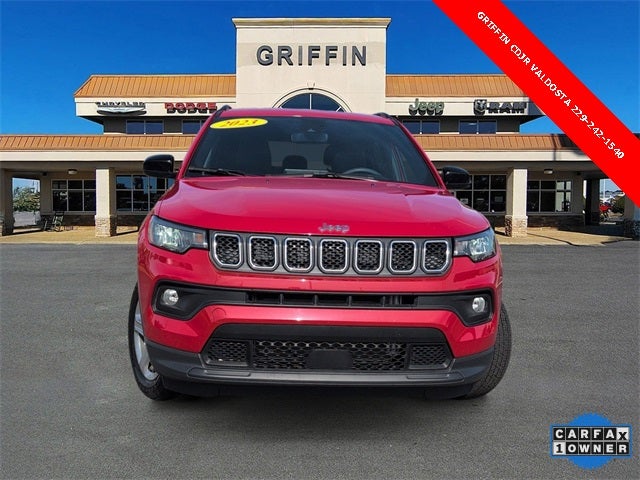 Griffin Chrysler Dodge Jeep Ram Valdosta is delighted to offer this beautiful 2023 Jeep Compass Latitude In Redline Pearlcoat. This vehicle is beautifully equipped with Quick Order Package 29J, 4WD, 17 x 7.0 Aluminum Wheels, 3.73 Final Drive Ratio, 4-Wheel Disc Brakes, 6 Speakers, ABS brakes, Air Conditioning, Alloy wheels, AM/FM radio: SiriusXM, Auto High-beam Headlights, Brake assist, Bumpers: body-color, Compass, Delay-off headlights, Driver door bin, Driver vanity mirror, Dual front impact airbags, Dual front side impact airbags, Electronic Stability Control, Four wheel independent suspension, Front anti-roll bar, Front Bucket Seats, Front Center Armrest w/Storage, Front fog lights, Front License Plate Bracket, Front reading lights, Fully automatic headlights, Heated door mirrors, Illuminated entry, Knee airbag, Leather Shift Knob, Low tire pressure warning, Occupant sensing airbag, Outside temperature display, Overhead airbag, Overhead console, Panic alarm, ParkView Rear Back-Up Camera, Passenger door bin, Passenger vanity mirror, Power door mirrors, Power steering, Power windows, Premium Cloth/Vinyl Bucket Seats, Radio: Uconnect 5 w/10.1 Display, Rear anti-roll bar, Rear seat center armrest, Rear window defroster, Rear window wiper, Remote keyless entry, Security system, Speed control, Split folding rear seat, Spoiler, Steering wheel mounted audio controls, Tachometer, Telescoping steering wheel, Tilt steering wheel, Traction control, Trip computer, and Variably intermittent wipers! 24/32 City/Highway MPG