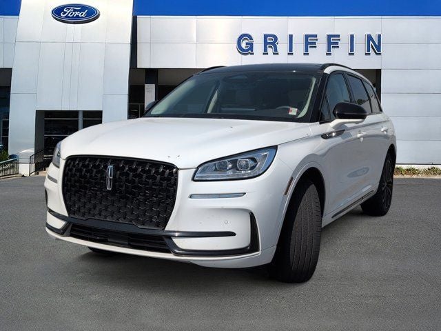 Griffin Ford Lincoln is delighted to offer this good-looking 2023 Lincoln Corsair Reserve In White Metallic. This vehicle is beautifully equipped with Equipment Group 201A (60/40 EasyFold Rear Seat w/Power Seatback Release, Frameless Auto Dimming Rearview Mirror, Hands-Free Liftgate, Heated Sideview Mirrors, Heated Steering Wheel, Heated/Ventilated Driver & Front Passenger Seats, Phone As A Key (PAAK), Power Tilt/Telescoping Steering Column w/Memory, Rain Sensing Wipers, Universal Garage Door Opener, Windshield Wiper De-Icer, and Wireless Charging Pad), Jet Appearance Package (Body-Color Exterior Elements, Pillar Black Exterior Elements, and Wheels: 20 Black Aluminum), Towing Package, 10 Speakers, 19 Bright Machined Aluminum Wheels, 3.81 Axle Ratio, 360-Degree Camera, 4-Wheel Disc Brakes, ABS brakes, Air Conditioning, Alloy wheels, AM/FM radio: SiriusXM, Auto High-beam Headlights, Auto-dimming Rear-View mirror, Automatic temperature control, Brake assist, Bumpers: body-color, Compass, Delay-off headlights, Driver door bin, Driver vanity mirror, Dual front impact airbags, Dual front side impact airbags, Electronic Stability Control, Emergency communication system: SYNC 4 911 Assist, Four wheel independent suspension, Front anti-roll bar, Front Bucket Seats, Front Center Armrest, Front dual zone A/C, Front reading lights, Front/Side/Rear Parking Sensors, Fully automatic headlights, Heated door mirrors, Heated front seats, Illuminated entry, Knee airbag, Leather steering wheel, Lincoln Premium Audio System Subwoofer Delete, Low tire pressure warning, Memory seat, Navigation system: Connected Navigation (3-year trial), Occupant sensing airbag, Outside temperature display, Overhead airbag, Overhead console, Panic alarm, Panoramic Vista Roof w/Power Shade, Passenger door bin, Passenger vanity mirror, Power door mirrors, Power driver seat, Power Liftgate, Power passenger seat, Power steering, Power windows, Premium Leather Heated Comfort Seats, Radio data system, Radio: Lincoln Premium Audio System w/MP3, Rear anti-roll bar, Rear Parking Sensors, Rear reading lights, Rear seat center armrest, Rear window defroster, Rear window wiper, Remote keyless entry, Reverse Brake Assist, Roof rack: rails only, Security system, SiriusXM Radio, Speed control, Speed-sensing steering, Speed-Sensitive Wipers, Split folding rear seat, Spoiler, Steering wheel mounted A/C controls, Steering wheel mounted audio controls, SYNC 4 Communications & Entertainment System, Tachometer, Telescoping steering wheel, Tilt steering wheel, Traction control, Trip computer, and Variably intermittent wipers!