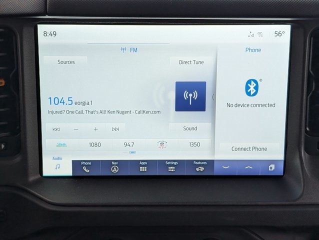 Griffin Chrysler Dodge Jeep Ram is proud to offer this handsome 2024 Ford Bronco Badlands In Gray Metallic. This vehicle is beautifully equipped with Equipment Group 334A High/Lux Package (10 Speakers w/Subwoofer, 2-Door Intelligent Access w/Lock/Unlock, 360-Degree Camera, Adaptive Cruise Control, Additional Sound Deadening, Ambient Footwell Lighting, Auto-Dimming Interior Rear-View Mirror, Dr & Pass Illuminated Sliding Visor Vanity Mirrors, Dual Smart Charging USB Ports, Dual-Zone Electronic Automatic Temperature Control, Evasive Steering Assist, Front Parking Sensors, Front Row Heated Seats, Heated Steering Wheel, Information on Demand Panel, Power Outlet - Back Side of Center Floor Console, Radio: B&O Sound System by Bang & Olufsen, Rear Parking Sensors, Sideview Mirrors, Universal Garage Door Opener, and Wireless Charging Pad), 4-Wheel Disc Brakes, 4.7 Axle Ratio, 7 Speakers, ABS brakes, Air Conditioning, Alloy wheels, AM/FM radio: SiriusXM with 360L, AM/FM Stereo, Auto High-Beam Headlamps, Auto High-beam Headlights, BLIS Blind Spot Information System, Brake assist, Carbonized Gray Molded-In-Clr Hard Top w/o Headliner, Compass, Delay-off headlights, Driver door bin, Driver vanity mirror, Dual front impact airbags, Dual front side impact airbags, Electronic Stability Control, Emergency communication system: 911 Assist, Exterior Parking Camera Rear, Front anti-roll bar, Front Bucket Seats, Front Center Armrest, Front License Plate Bracket, Front reading lights, Front Row Top Panels Storage Bag, Front wheel independent suspension, Fully automatic headlights, Heated door mirrors, Illuminated entry, Integrated roll-over protection, Lane-Keeping System, Leather Shift Knob, Low tire pressure warning, Marine Grade Vinyl Bucket Seats, Occupant sensing airbag, Outside temperature display, Overhead airbag, Overhead console, Panic alarm, Passenger door bin, Passenger vanity mirror, Power door mirrors, Power steering, Power windows, Pre-Collision Assist w/Automatic Emergency Braking, Radio data system, Rear-View Camera, Rear-Window Defroster & Washer, Remote keyless entry, Removable Hoop Step, Security system, SiriusXM Radio w/360L, Speed control, Split folding rear seat, Steering wheel mounted audio controls, SYNC 4, Tachometer, Telescoping steering wheel, Tilt steering wheel, Traction control, Trip computer, Variably intermittent wipers, Voltmeter, and Wheels: 17 Machined Carbonized Aluminum! Recent Arrival!