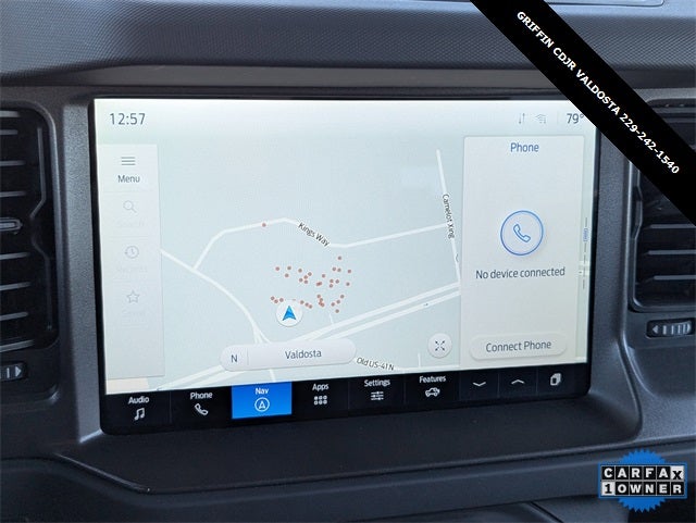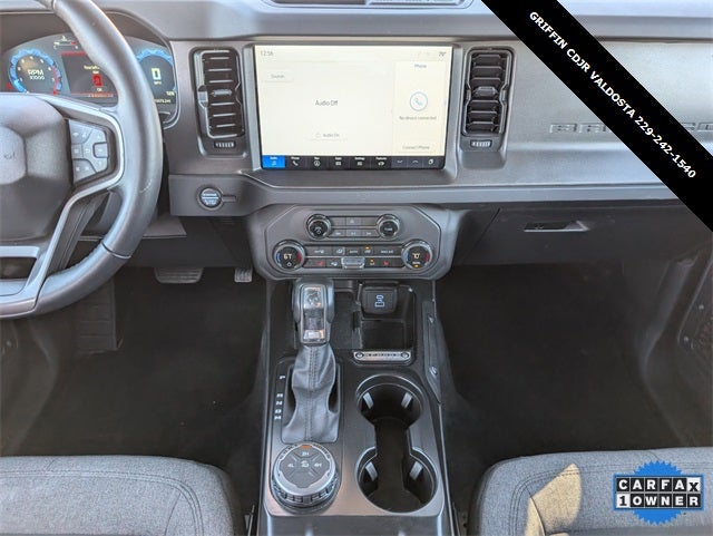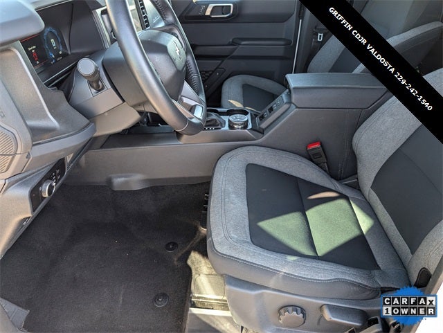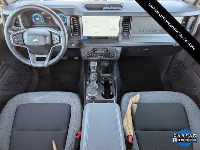 Griffin Chrysler Dodge Jeep Ram Valdosta is excited to offer this good-looking 2025 Ford Bronco Big Bend In Oxford White. This vehicle is beautifully equipped with Equipment Group 222A Mid Package (2-Door Intelligent Access w/Lock/Unlock, Ambient Footwell Lighting, Connected Navigation, Dr & Pass Illuminated Sliding Visor Vanity Mirrors, Dual Smart Charging USB Ports, Dual-Zone Electronic Automatic Temperature Control, Front Row Heated Seats, Power Outlet - Back Side of Center Floor Console, and Rear Parking Sensors), 4-Wheel Disc Brakes, 4.46 Axle Ratio, 7 Speakers, ABS brakes, Air Conditioning, Alloy wheels, AM/FM radio: SiriusXM with 360L, AM/FM Stereo, Auto High-Beam Headlamps, Auto High-beam Headlights, BLIS Blind Spot Information System, Brake assist, Carbonized Gray Molded-In-Color Hard Top, Cloth Bucket Seats, Compass, Delay-off headlights, Driver door bin, Driver vanity mirror, Dual front impact airbags, Dual front side impact airbags, Electronic Stability Control, Emergency communication system: 911 Assist, Exterior Parking Camera Rear, Front anti-roll bar, Front Bucket Seats, Front Center Armrest, Front reading lights, Front wheel independent suspension, Fully automatic headlights, Heated door mirrors, Illuminated entry, Integrated roll-over protection, Lane-Keeping System, Leather Shift Knob, Low tire pressure warning, Occupant sensing airbag, Outside temperature display, Overhead airbag, Overhead console, Panic alarm, Passenger door bin, Passenger vanity mirror, Power door mirrors, Power steering, Power windows, Pre-Collision Assist w/Automatic Emergency Braking, Radio data system, Rear-View Camera, Rear-Window Defroster & Washer, Remote keyless entry, Security system, SiriusXM w/360L, Speed control, Split folding rear seat, Steering wheel mounted audio controls, SYNC 4, Tachometer, Telescoping steering wheel, Tilt steering wheel, Traction control, Trip computer, Variably intermittent wipers, and Wheels: 17 Carbonized Gray-Painted Aluminum! Odometer is 2324 miles below market average!